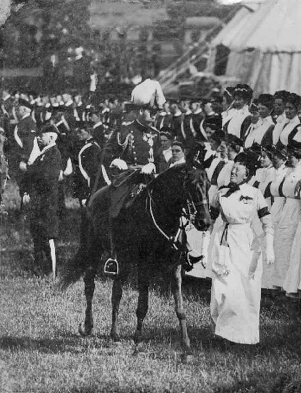 The King rode down the seven lines that were formed, and the Queen followed in the Royal carriage. His Majesty afterwards rode up to the nurses, and one who was at the Durbar at Delhi was presented.