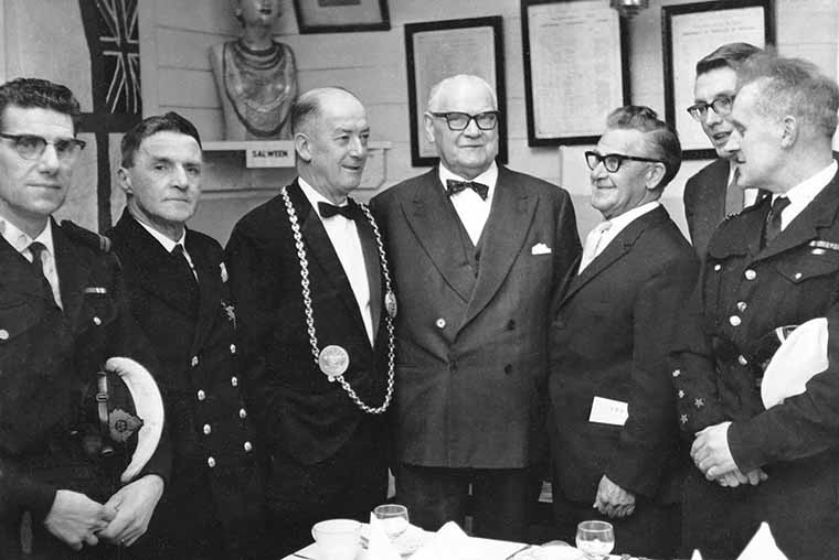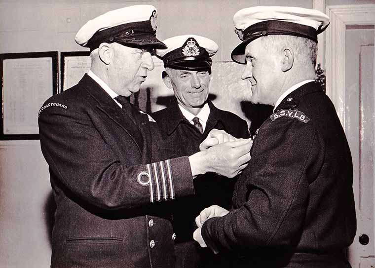 The Presentation of clasps to their Long Service medals to A. P. Clavery 37 years and D. E. Tinning 40 years of service to both H M Coastguard and South Shields Volunteer Life Brigade Monday 14th of April 1969