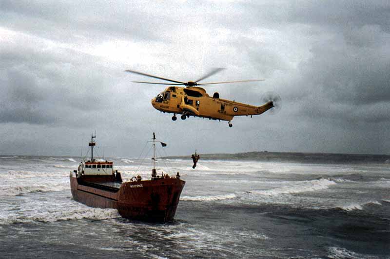 Timed 0742, UTC: Mv Insistence, GUMD, had machinery failure in lat 55 DON, long 01 25W, off River Tyne piers, al 0641, UTC Four persons on board. Wind north-norlh-easl, force 7 (near gale), sea very rough, heavy swell. Helicopter scrambled, Tyne lifeboat launched, Tyne pilot cutter proceeded and auxiliary Coastguard companies called out. All four crew rescued by helicopter. Vessel now aground off River Tyne south pier. Auxiliary Coastguards remaining on scene.