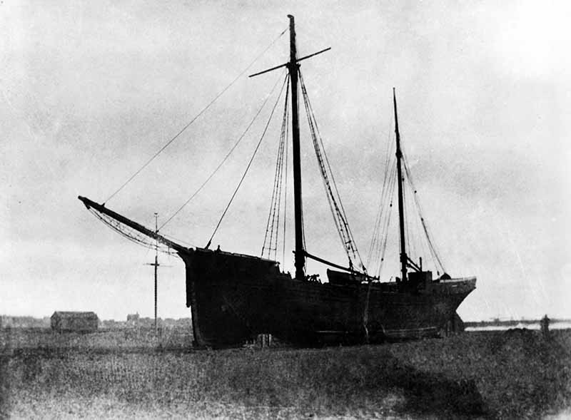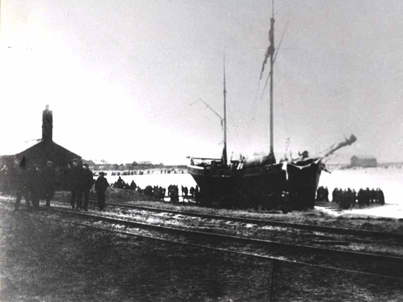 The Lord Dufferin, a splendid little ship of light draught has performed quite an unprecedented feat. She lies snugly under the railway embankment close to the sea road, and it will ever be a mystery how she got there.