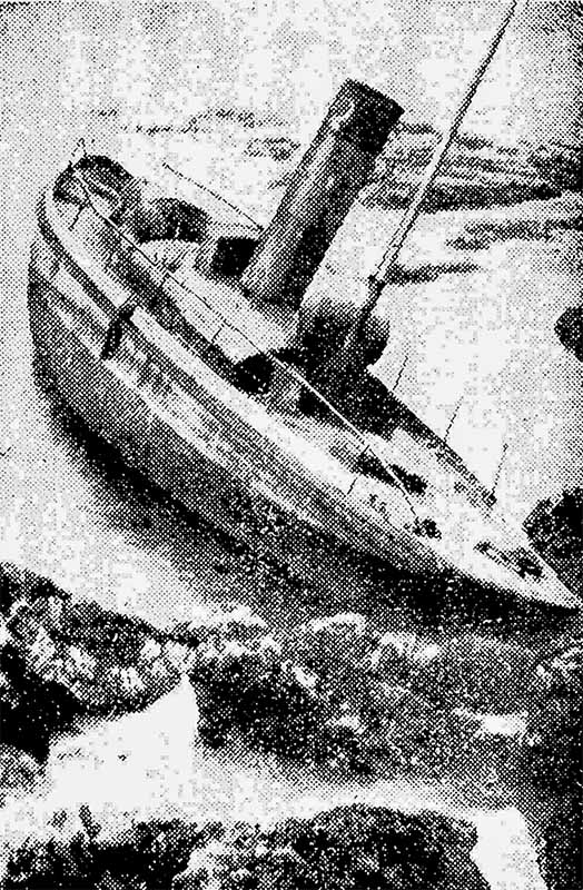 The Tyne tug S.N. 32 after being driven ashore south of the Tyne when towing barges laden with materials salved from the stranded P.C. 71 nearby. She is in danger of becoming a total wreck.
